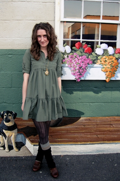 Green American Rag Dresses Brown Free People Tights Green Boyfriends.